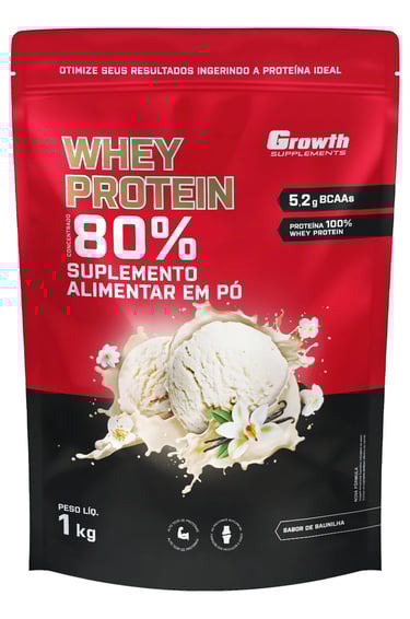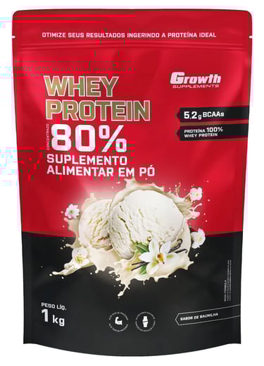 O whey protein 80% sabor baunilha da Growth é uma proteína concentrada do soro do leite, ideal para complementar a ingestão proteica diária, ajudando na recuperação e manutenção da massa muscular, com sabor suave e fácil de consumir..